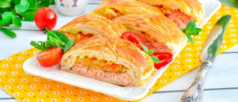 Слоеный пирог с рыбной начинкой рецепт
