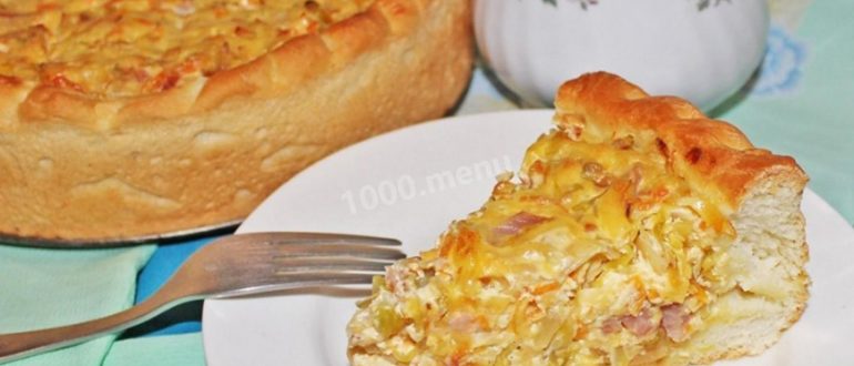Заливной песочный пирог с грибами, ветчиной и сыром рецепт