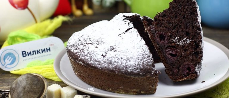 Постный шоколадный пирог с вишнями и бананом рецепт