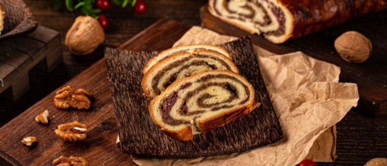 Рулет с орехами, корицей и вишнями рецепт