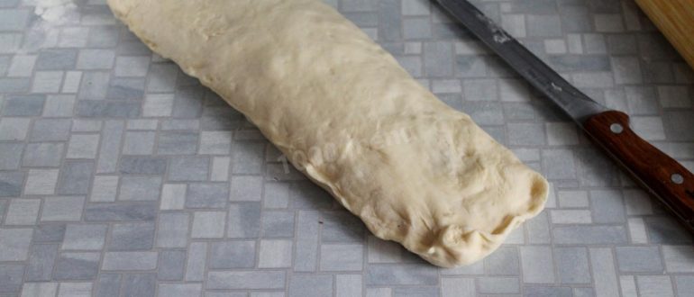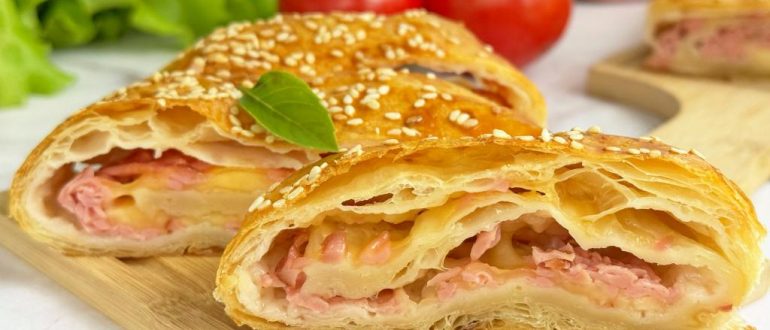 Рулет «Подкова» из бездрожжевого слоёного теста, с мясом рецепт