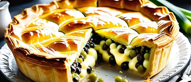 Пирог из слоеного теста с луком-пореем и шпинатом рецепт