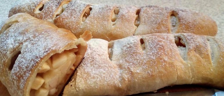 Штрудель из слоеного теста с сырной начинкой рецепт