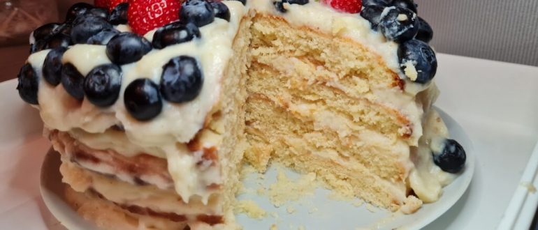 Торт «Белоснежка» из песочных коржей с заварным кремом рецепт