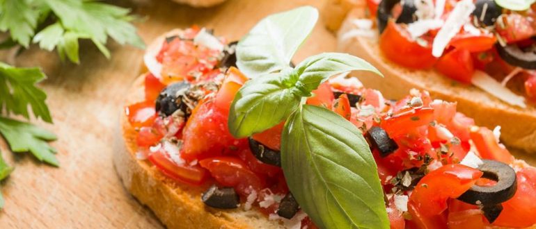 Брускетта из песочного теста с оливками, помидорами и травами рецепт