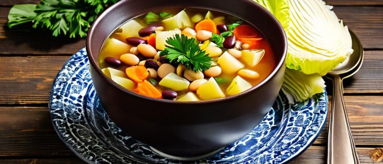 «Ленивые» щи из свежей капусты с фасолью и овощами рецепт