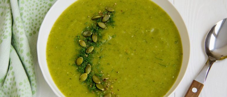 Холодный суп-пюре из огурцов с зеленью, имбирём и чесноком рецепт