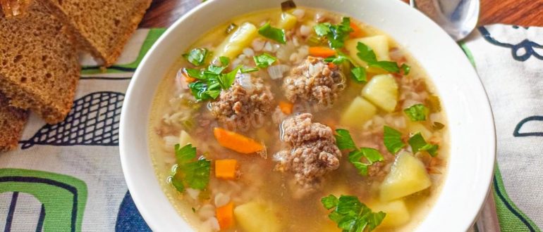 Суп с мясными фрикадельками, кабачками и помидорами рецепт