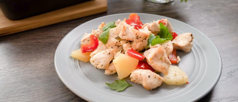Суп-рагу с курицей, сладким перцем и зелёным горошком рецепт