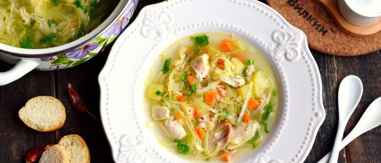 Суп с копчёной курицей, капустой и рисом рецепт
