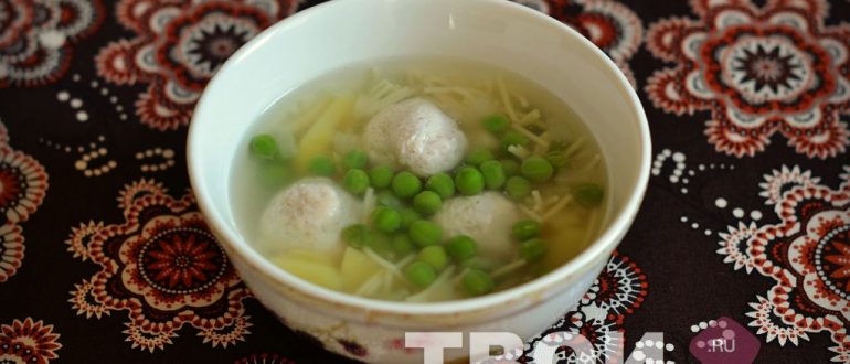 Сырный суп с зеленым горошком и яичной лапшой рецепт