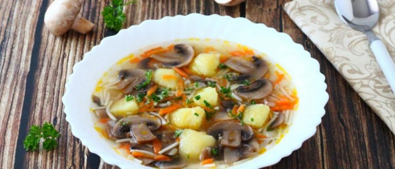 Фасолевый суп с вермишелью, грибами, кабачком и сельдереем рецепт