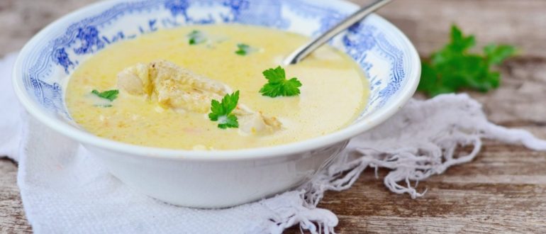 Сырный суп с куриным филе и консервированной кукурузой рецепт