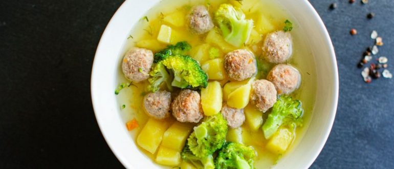 Суп с брокколи, чечевицей, фрикадельками и шпинатом рецепт