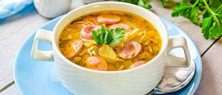 Суп с сосисками, вермишелью и овощами рецепт