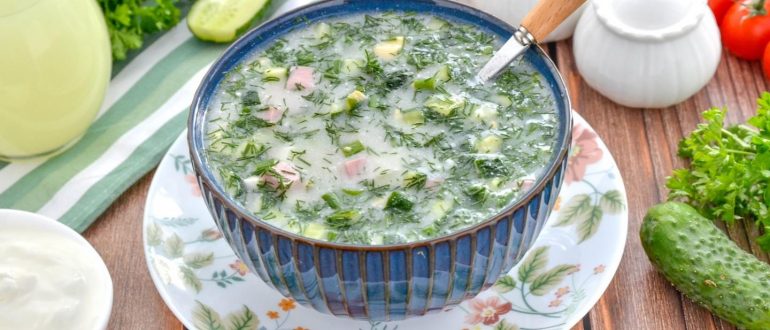Окрошка на сыворотке с копчёными колбасками рецепт