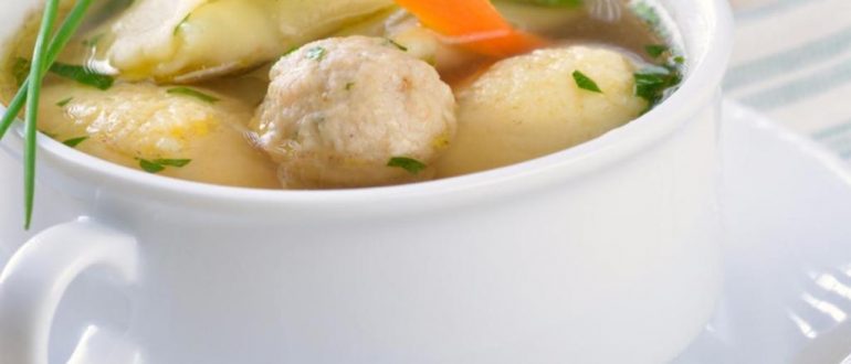Суп с фрикадельками и сырными шариками (клецками) рецепт