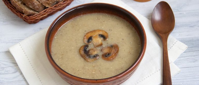 Гороховый суп-пюре с жареными шампиньонами (на курином бульоне) рецепт