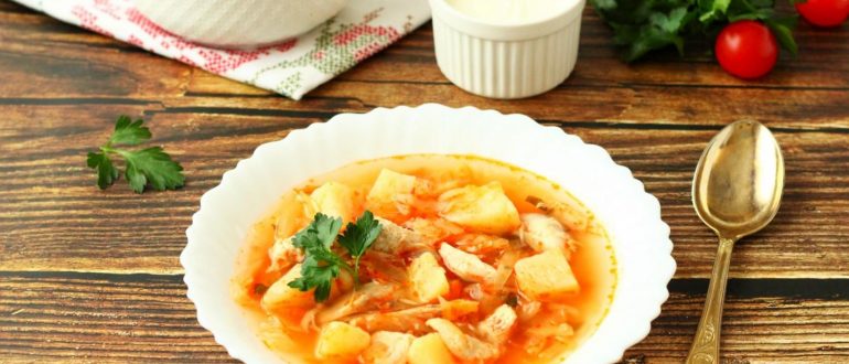 Томатный суп с квашеной капустой и копчёными колбасками рецепт