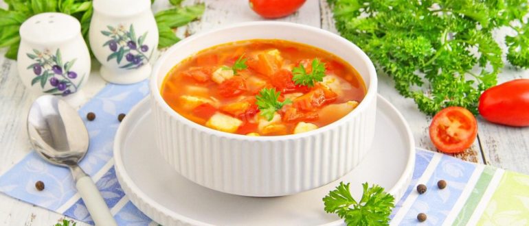 Томатный суп с курицей, фасолью и овощами рецепт