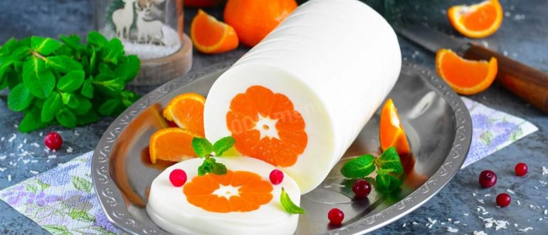 Десерт из йогурта с шоколадом, сливками и мандаринами рецепт