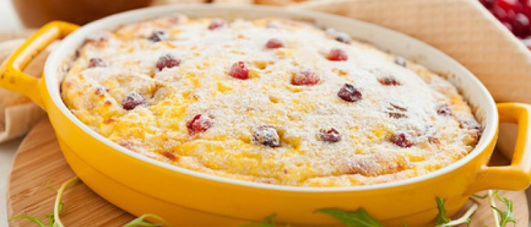 Творожная запеканка c изюмом, курагой и клюквой рецепт