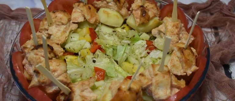 Куриный шашлык, запечённый в рукаве, с томатно-луковым соусом рецепт