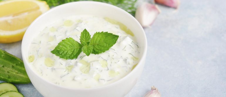 Дзадзики с запечённым чесноком и кинзой рецепт