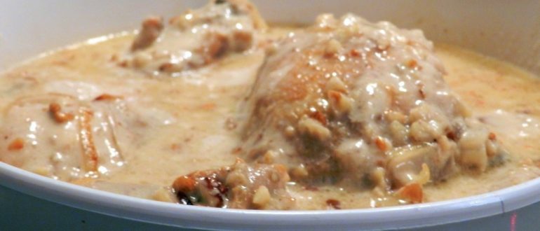 Курица, тушенная в сливочно-винном соусе с орехами и корицей рецепт