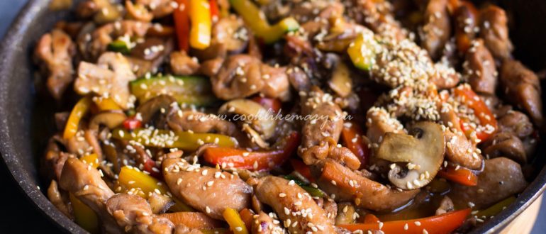 Мини-шашлыки из лосося, курицы и телятины в соусе терияки рецепт