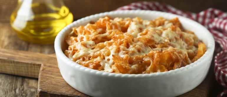 Запеканка из макарон с сыром, ветчиной и соусом бешамель рецепт