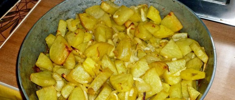 Картофель, печенный в духовке с луком и помидорами рецепт