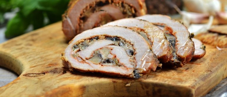 Рулет из индейки (или свинины) с шампиньонами и болгарским перцем рецепт