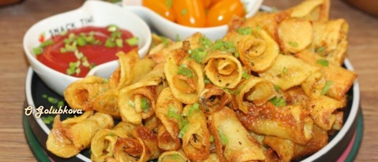 Рулетики с пряной картофельной начинкой (на сковороде) рецепт