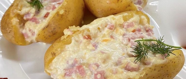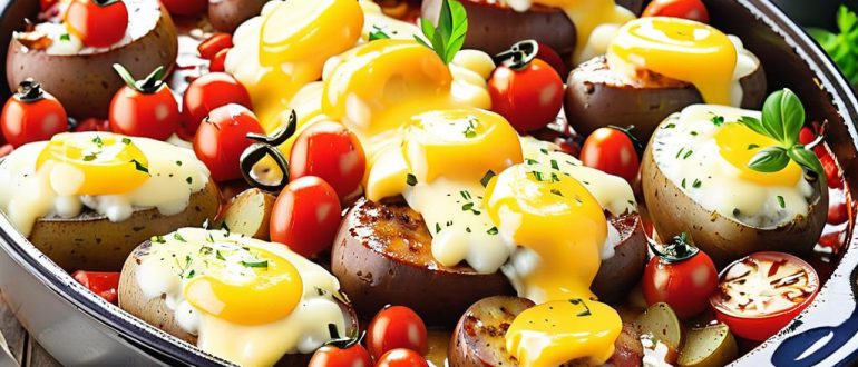 Картошка, запечённая с сосисками, помидорами и сыром рецепт