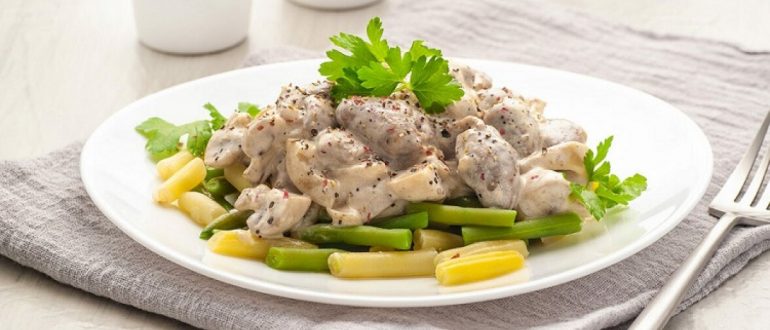Куриное филе с грибами, запечённое в сметанно-сырном соусе рецепт
