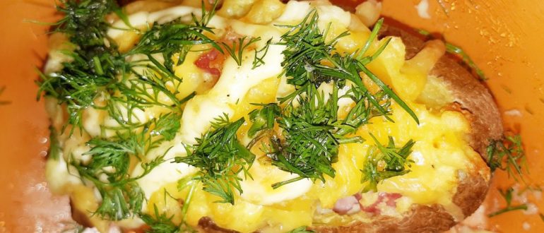 Запеченная картошка, фаршированная креветками и огурцом рецепт