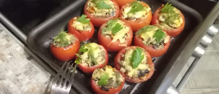 Помидоры, фаршированные курицей, плавленым сыром, чесноком и зеленью рецепт