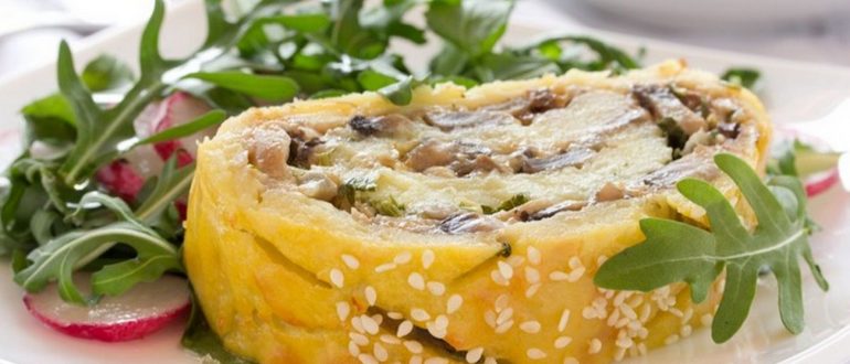 Праздничный картофельный рулет с грибами рецепт