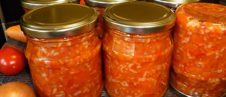Салат из баклажанов с огурцами и перцем, в томатном соусе (на зиму) рецепт