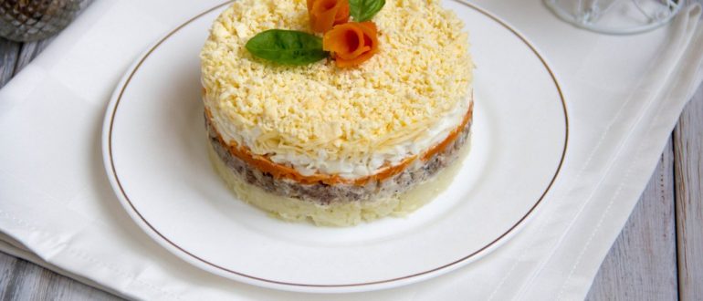 Салат «Мимоза» с творогом (без майонеза) рецепт