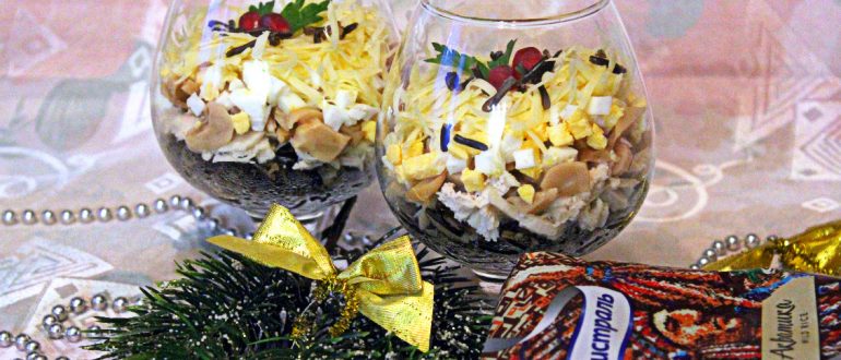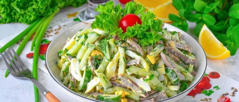 Салат из яичных и печёночных блинчиков с маринованным луком рецепт