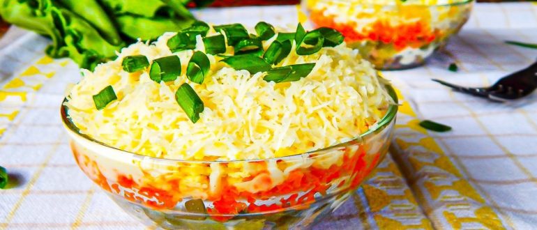 Слоеный салат с куриной печенью «Одуванчики» рецепт