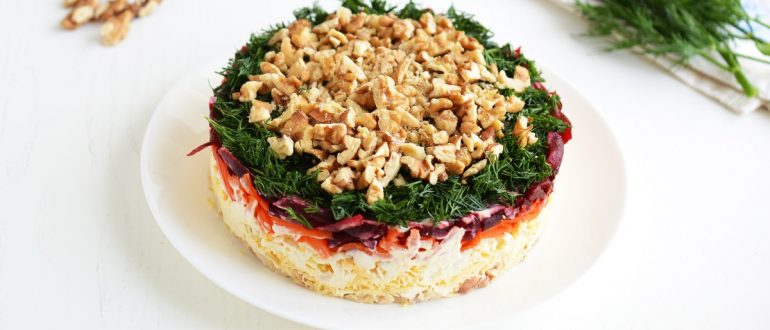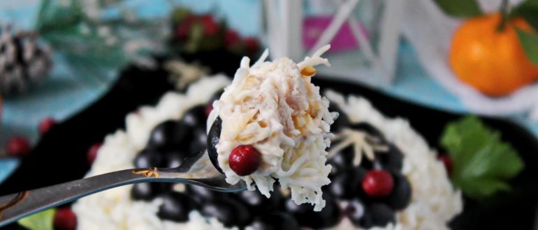 Салат «Первый снег», с курицей, сыром и виноградом рецепт