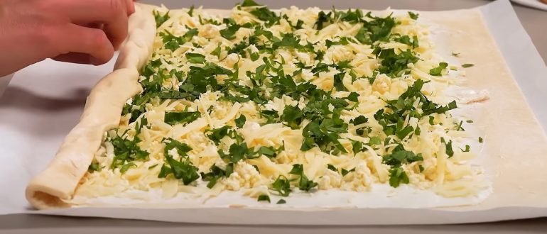Рулетики из слоеного теста с черемшой рецепт