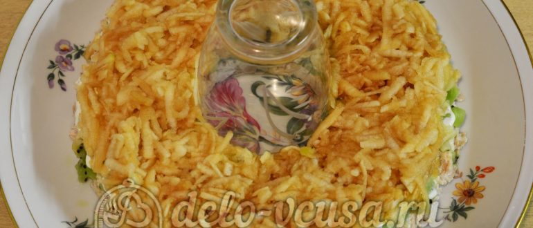 Слоеный салат с курицей «Красная шапочка» рецепт