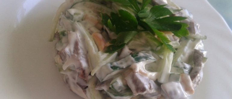 Салат «Пестренький» со свининой, овощами, сыром рецепт