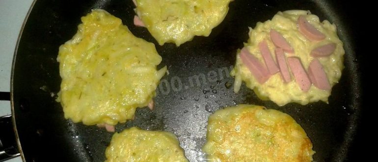 Бобовые оладьи с припёком из сосисок рецепт