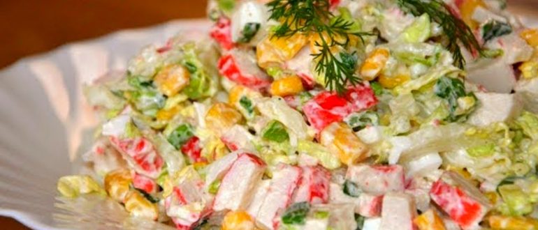 Салат из крабовых палочек и капусты, с укропом рецепт