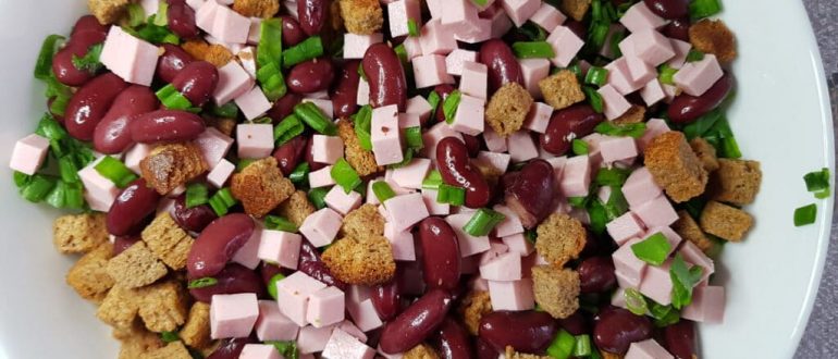 Салат с фасолью, грибами и сухариками рецепт